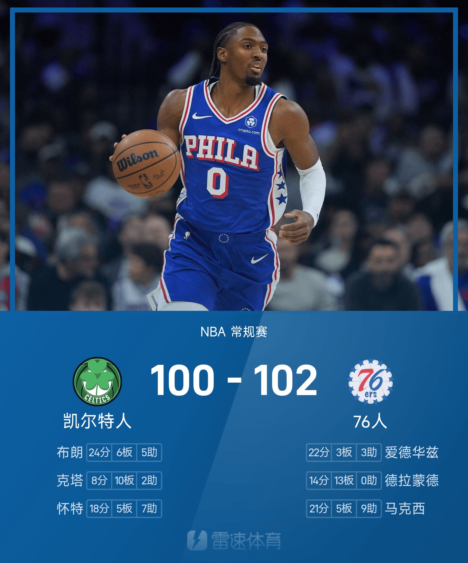 खेल के अंत में, 76ers ने सेल्टिक्स को 102-100 से हराया।